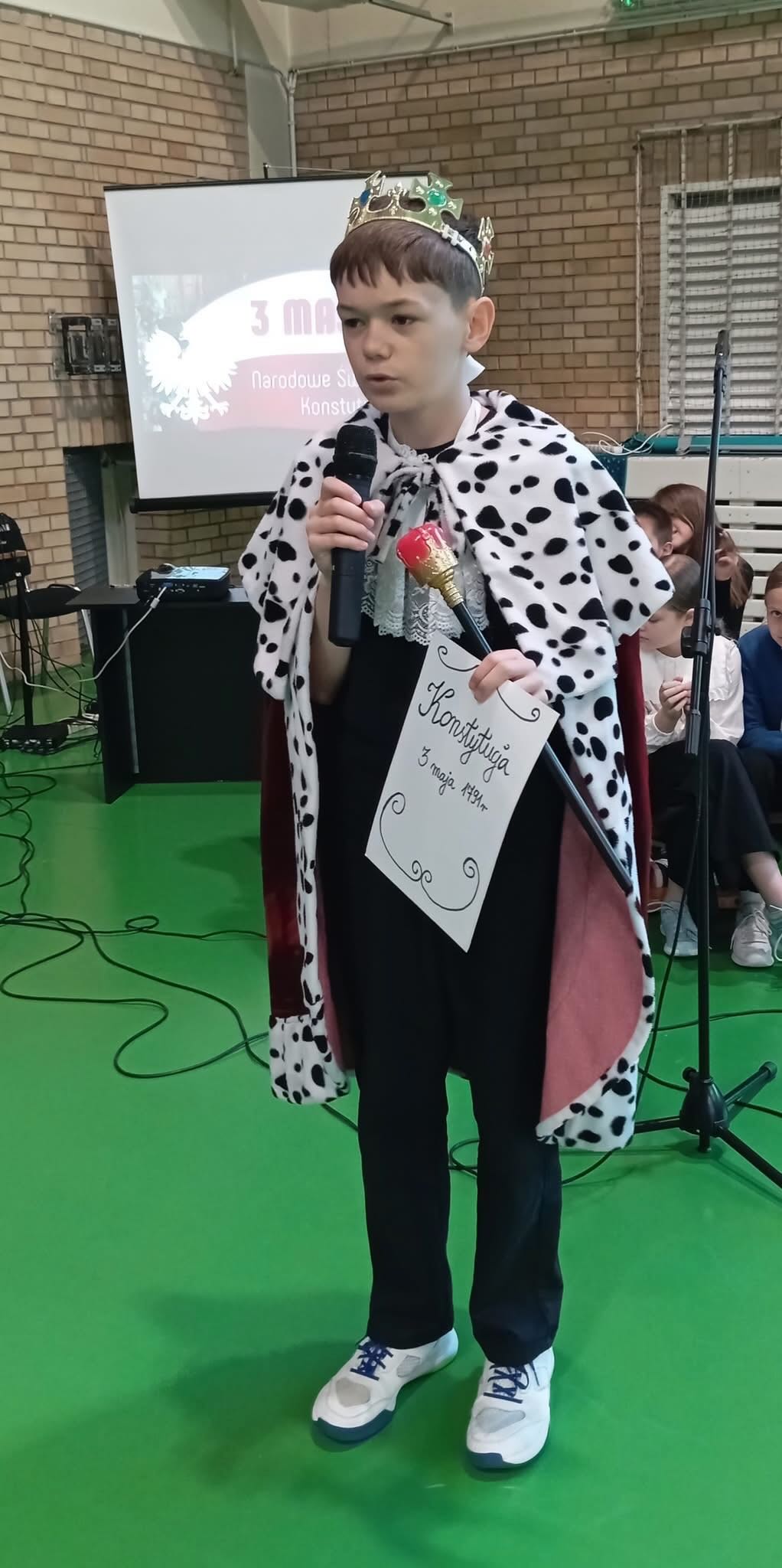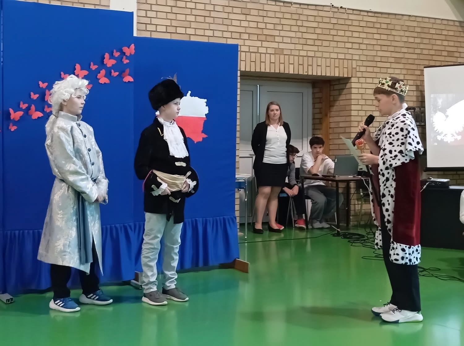 Dziś cała nasza społeczność szkolna zebrała się, by uczcić jedno z najważniejszych wydarzeń w historii Polski – uchwalenie Konstytucji 3 Maja. Uczniowie klasy 6 przypomnieli nam, jak wielkie znaczenie ma wolność, naród i ojczyzna. Młodzież przeniosła nas do roku 1791, by wspólnie z królem Stanisławem Augustem Poniatowskim i posłami uchwalić pierwszą w Europie, a drugą na świecie konstytucję. Wzruszające występy artystyczne, poetyckie strofy oraz patriotyczne pieśni przypomniały nam, że historia to nie tylko daty, ale wartości, które warto pielęgnować każdego dnia.